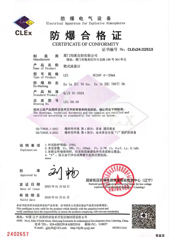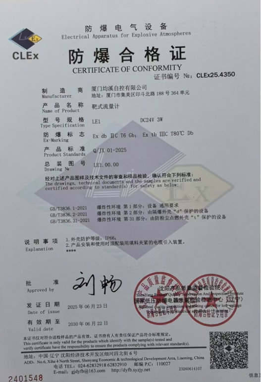 質(zhì)量防爆證